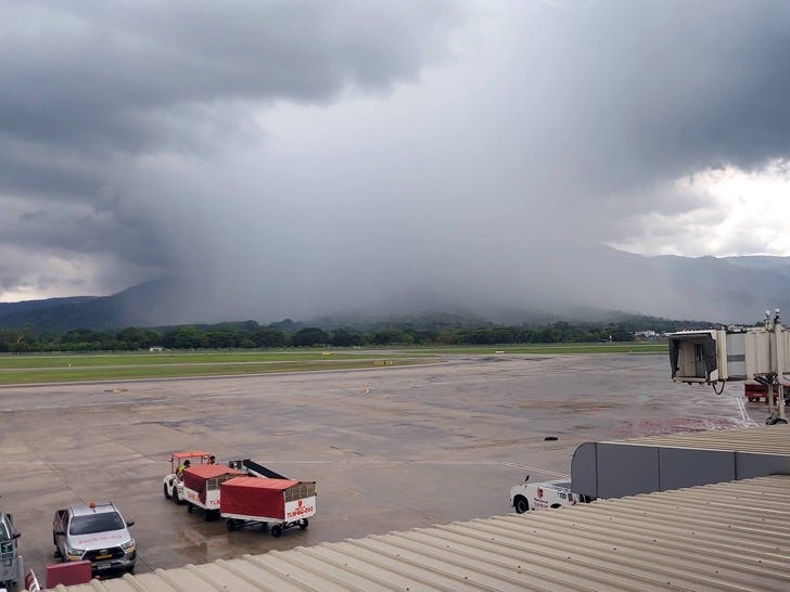 One of the most welcome sites when returning to Chiang Mai is seeing the mountain (Doi Suthep) near the airport. There have been days when the mountain is lost to sight in the haze, so being buried in a rain cloud was an acceptable sight